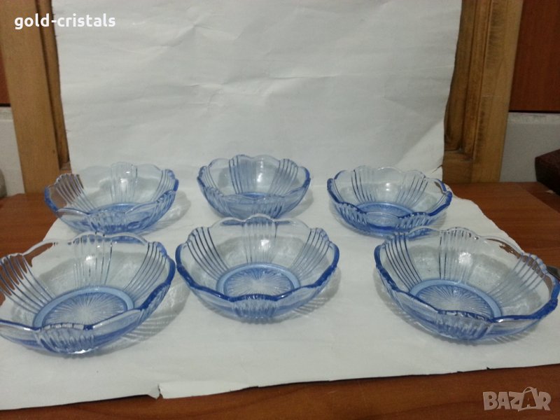 Ретро стъклени купички цветно синьо стъкло 6бр сервиз комплект сет лот ретро арт декор винтидж колекция стари антикварни предмети обзавеждане за дома и семейството подходящи за подарък за ценители и колекционери