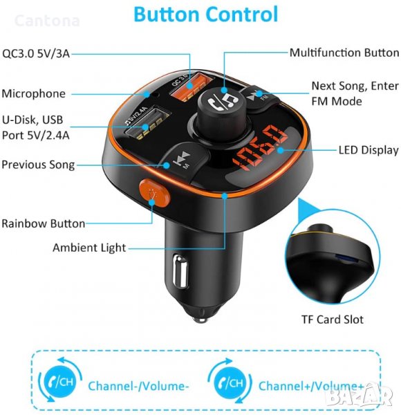 - Поддържа възпроизвеждане на музика чрез Bluetooth връзка, USB флаш устройство ≤64G, TF карта (≤64G), този bluetooth адаптер за кола ще осигури повече стерео и дуплекс звук със своята висококачествена система. Поддържа се формат MP3, WMA, FLAC, APE, WAV.