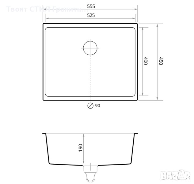 Кухненска Гранитна Мивка за Вграждане под плот Модел Лондон 60 - 555 x 450 mm