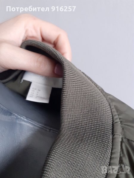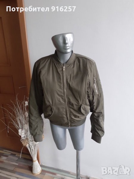 Страхотно яке бомбер , цвят милитъри . На H&M размер ХS по етикет , но отговаря и на S.