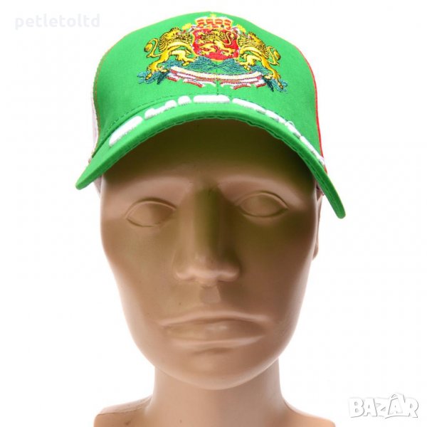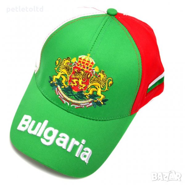Шапка с козирка, с цветовете на българския трикольор и ГЕРБ на Република България и надпис BULGARIA → Обява 36013363