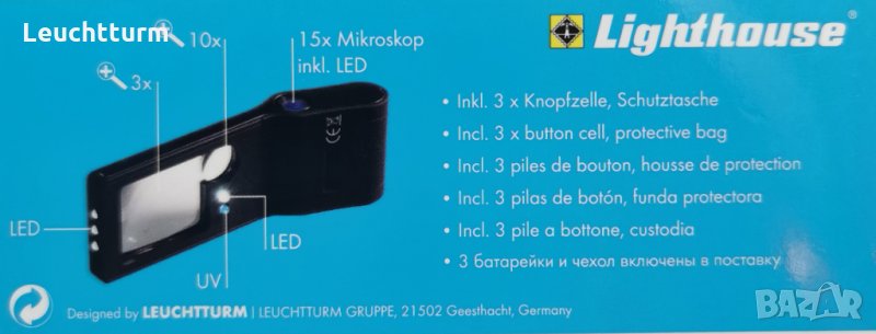 лупа 6 в 1 на Leuchtturm 3x 10x 15х