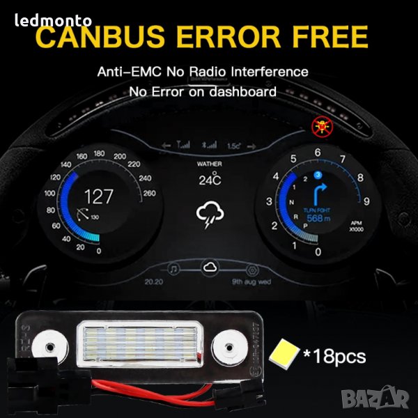 чифт 18SMD високомощна LED лампа за осветление на регистрационния номер