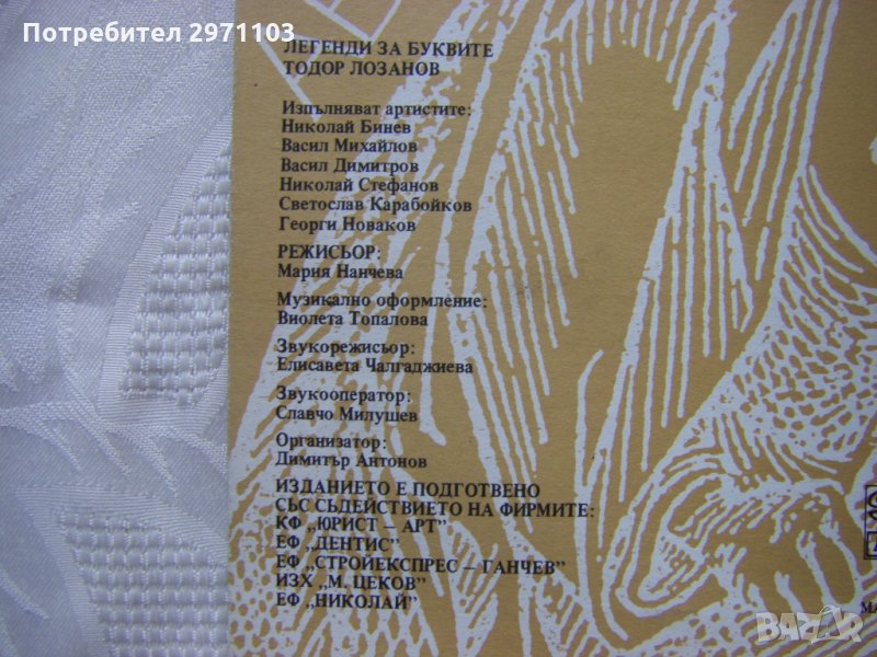 изп. артистите: Николай Бинев, Васил Михайлов, Васил Димитров, Николай Стефанов, Светослав Карабойков, Георги Новаков. Реж. Мария Нанчева. Муз. Оформление Виолета Топалова. Звукорежисьор Елисавета Чалгаджиева, звукооператор Славчо Милушев. Организатор Димитър Антонов