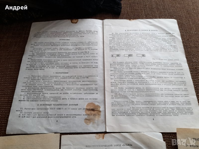 Инструкция за експлоатация магнетофон Диана → Обява 36014731