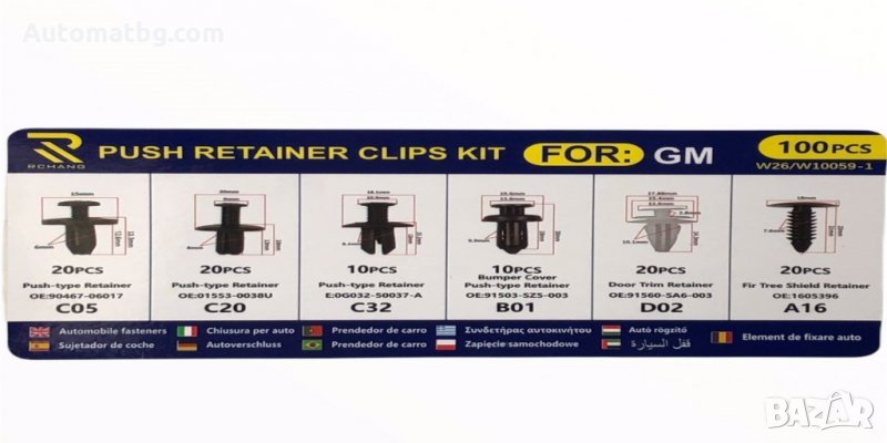 Щипки за интериор Automat, За Кори, Тапицерия, Комплект, 100 бр, GM.