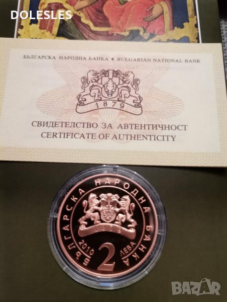 Медна монета 2 лева 2010 г. Български творци 200 години от рождението на Захарий Зограф Сертификат и брошурка.