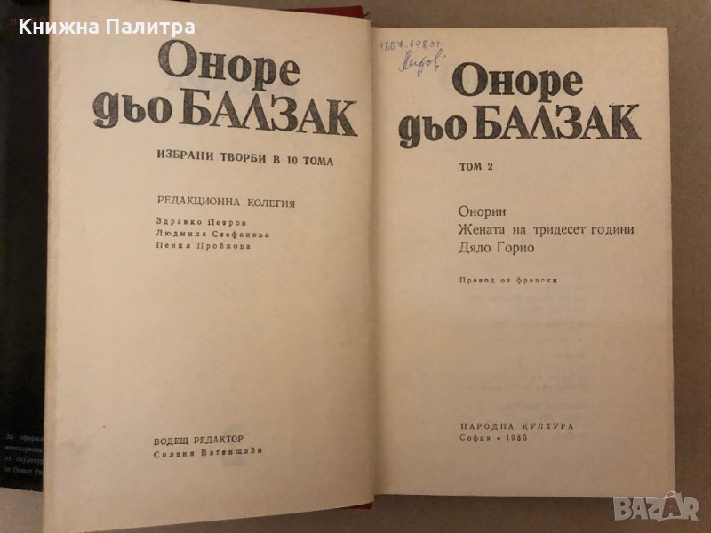 Избрани творби в десет тома. Том 2: Онорин; Жената на тридесет години; Дядо Горио Оноре дьо Балзак, снимка 1 - Други - 36017249 Избрани творби в десет тома. Том 2: Онорин; Жената на тридесет години; Дядо Горио Оноре дьо Балзак, снимка 2 - Други - 36017249 1/2
