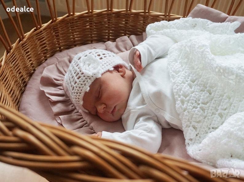 Одеялце тип „прегърни ме“ (73х73см) с добавени къдри, фина панделка за завързване, меко, топло, 100% памучно!