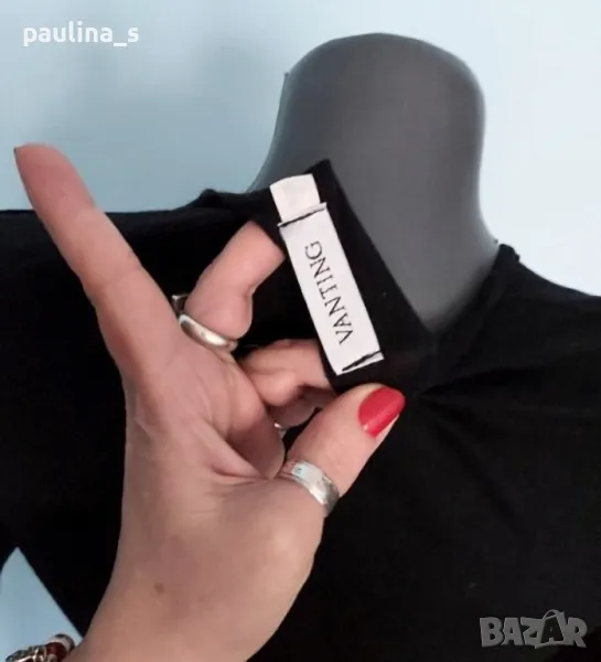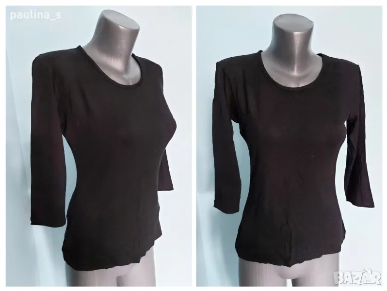 2️⃣. Колаж / Черна хипер еластична блуза, О-образно деколте, 7/8 ръкави, вискоза и ликра - от L до 4XL - цена 9,99лв / 5 евро. Като нова е, без дефекти и етикет.