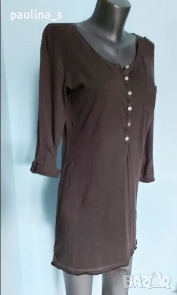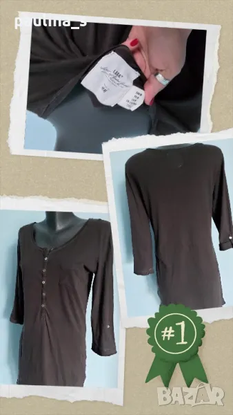5️⃣. Колаж / Памучна туника тип блуза с дълъг ръкав 7/8 "H&M" / унисайз. Цената е крайна 19,99лв / 10 евро. Памучна туника / блуза с О-образно деколте, копчетата от естествен седеф Абалон, 7/8 ръкави с регулация на дължината. Материята е 100%памук - хипоалергична и има еластичност, покрива няколко размера. Краищата не са поръбени, с изнищващ ефект. Украсителните тегели са фиксирани с декоративен оверлог. Цветът е Антрацит, неутрален и подхожда на всичко. Перфектна дреха, като нова.