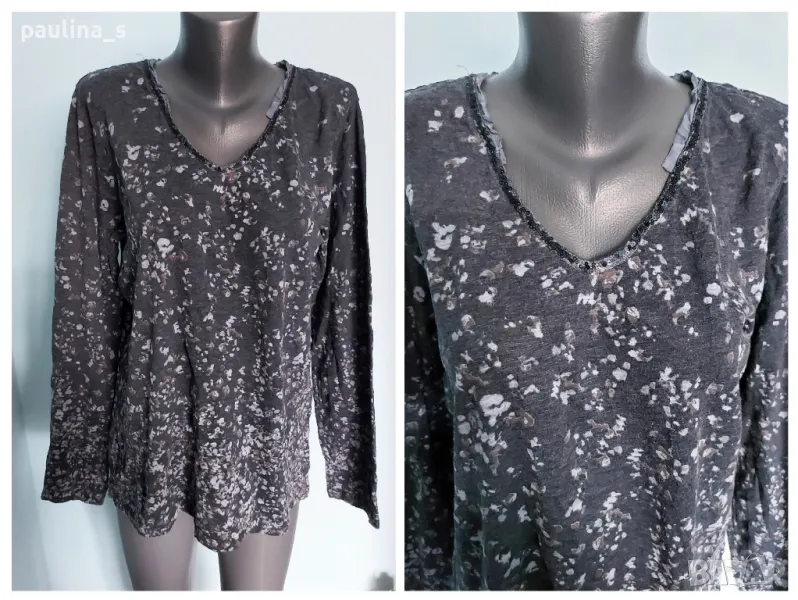 1️⃣. Колаж / Памучна маркова еластична блуза 100%памук на "Zero jeans". Цената е крайна 29,99лв / 15 евро. Флорален принт, V-образно деколте, 7/8 ръкави, хипоалергична с декорации от пайети - от XL до 3XL. Като нова е, без дефекти и етикет.