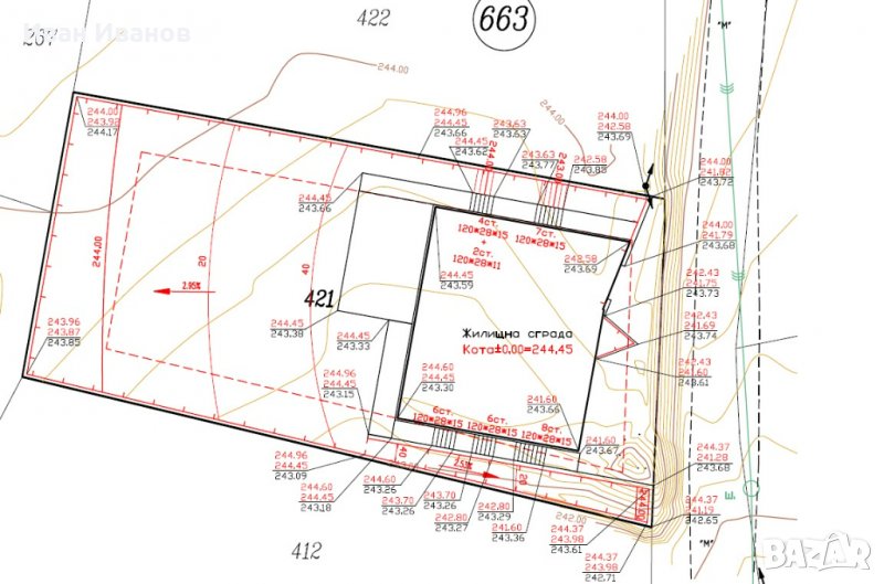 по част „Геодезия“ (вертикално планиране, трасировъчни планове и др.)