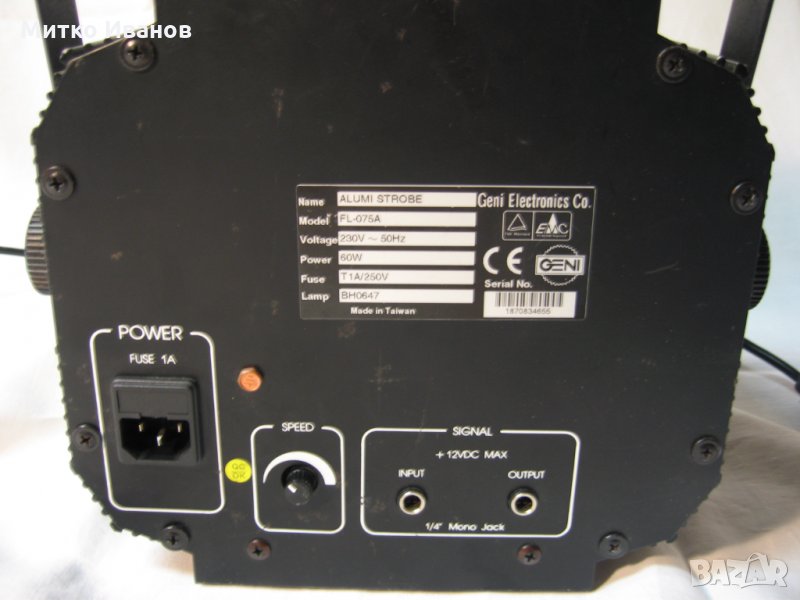 Предлагам качествен професионален италиански стробо (блитц) ефект GENI FL-75 с мощност 60W. Подходящ за професионална и домашна употреба.