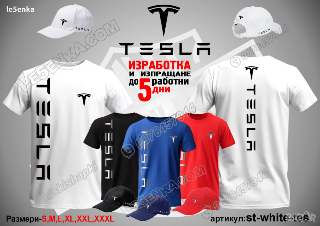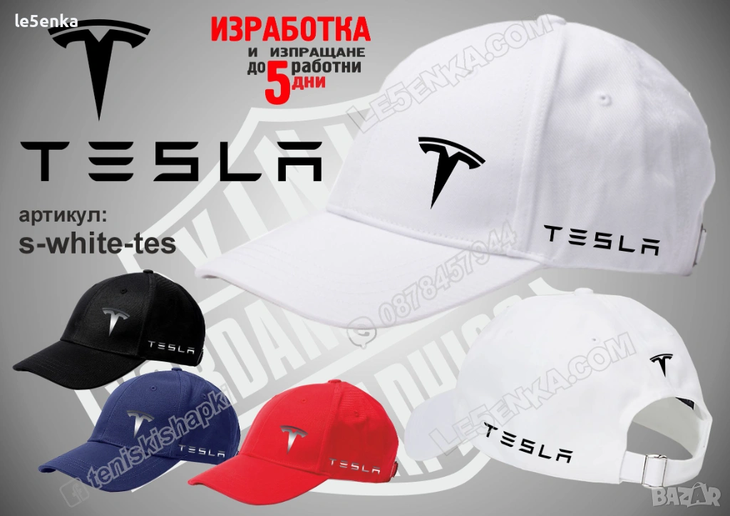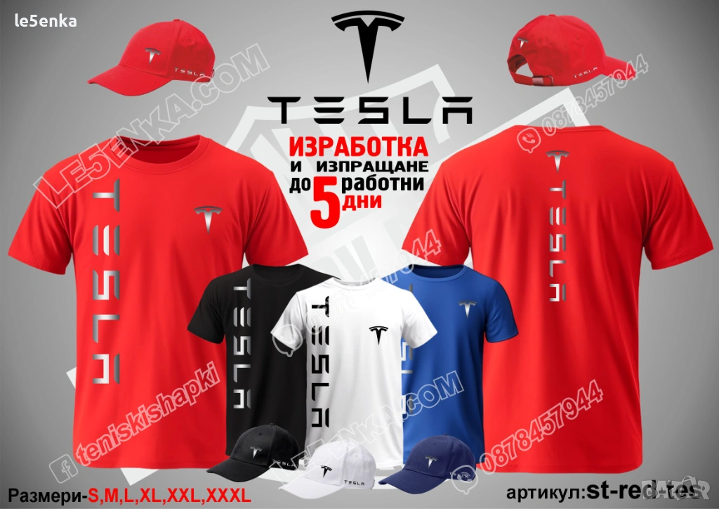 Посочената цена е за шапка и тениска комплект. Само шапка - 18 лв. ,а само тениска - 32 лв. Тениските са изработени от качествена памучна материя - различна номерация и цветове - черен, син, червен и бял. Шапките са памучни с метален клипс или коланче за регулиране - тип бейсболни. Последната снимка в обявата е на таблица с размери за тениските.