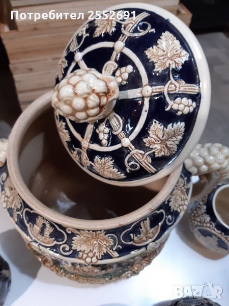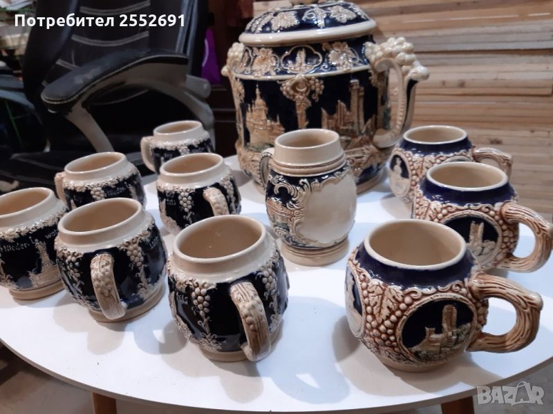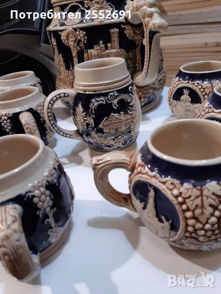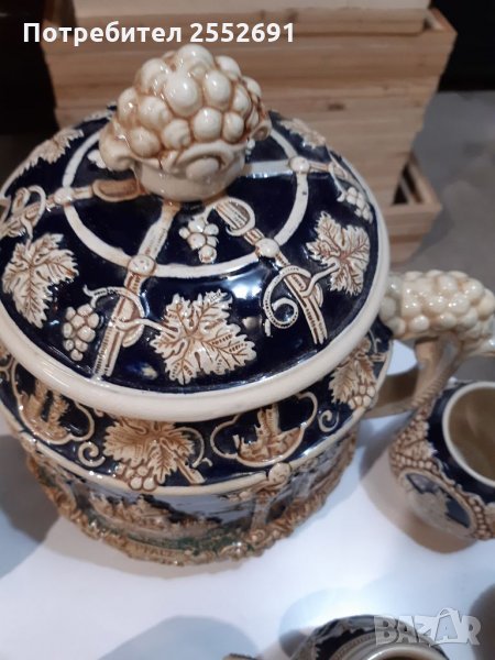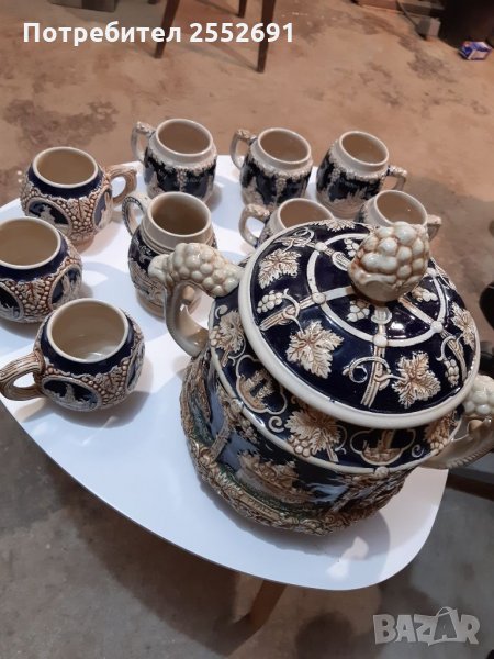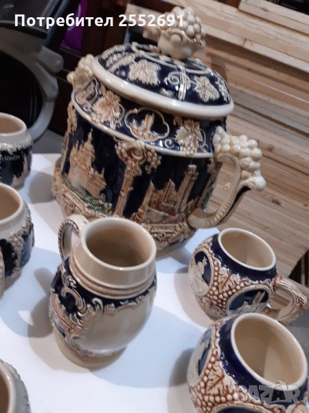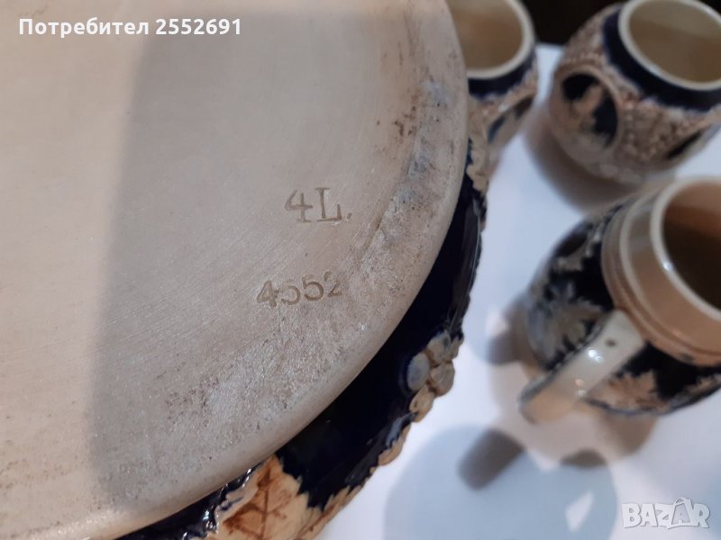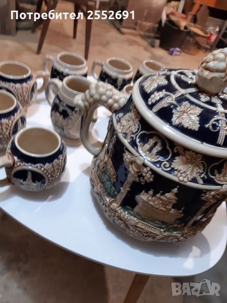 Немски комплект за ром или греяно вино от 50 -те години. Westerwald Wickwerke N 455. Производител - Wick- Werke Grenzhausen . Материал- фин каменин. Височина-26см. Надпис "WW" 4552 W-4L.