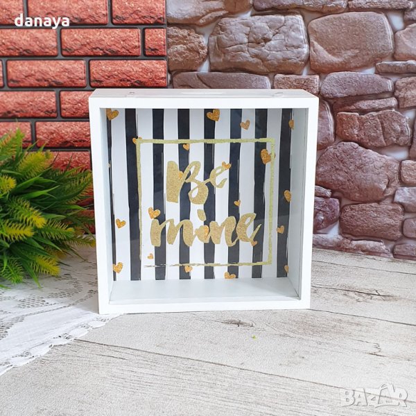 Тази дървена касичка с надпис “Бъди мой” е много подходяща за подарък.