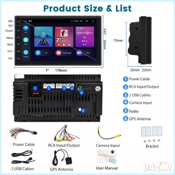 Wi-Fi интернет, новият Андроид, Bluetooth за разговори и музика, USB входове за флашка и зареждане на устройства, GPS навигация, теми за вид на меню, еквалайзер за настройка на звука, бърза реална RAM памет от ново поколение. ТОП дизайн!