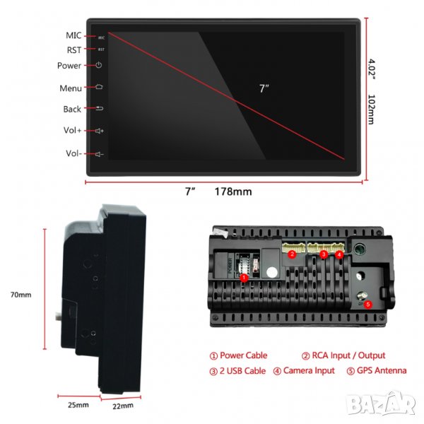 Мултимедия, плеър, Андроид, MP5, MP3, двоен дин 2, навигация, за кола, за автомобил, Android, екран