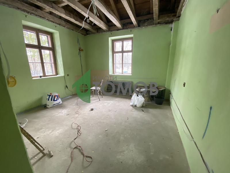 Имоти Томов представя на Вашето внимание невероятен имот в непосредствена близост до яз. Тича. Вилата е с площ от 125кв.м., която се състои от две постройки - едната изградена от естествен камък, а другата е тухлена. Помещенията в двете постройки се състоят от 5 спални, механа с още 2 стаи, вътрешна баня с тоалетна. Пред вилата има изграден голям фундамент, който може да се използва за изграждането на барбекю или допълнителни постройки. Стартирани са ремонтни дейности с цел подобряването на имота. Към имота принадлежат и 6200кв.м. гора, което прави имота уникален и перфектен за почивка и отдих, а също така и за инвестиция - къща за гости, за отдаване под наем и др.