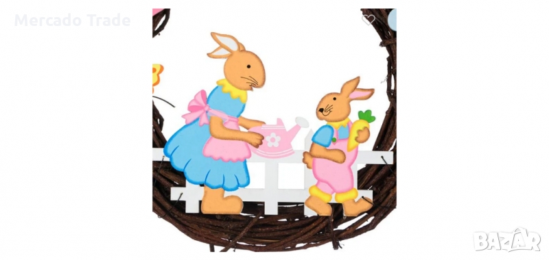 Великденски декоративен венец, Заек с ограда, 26см → Обява 36035626