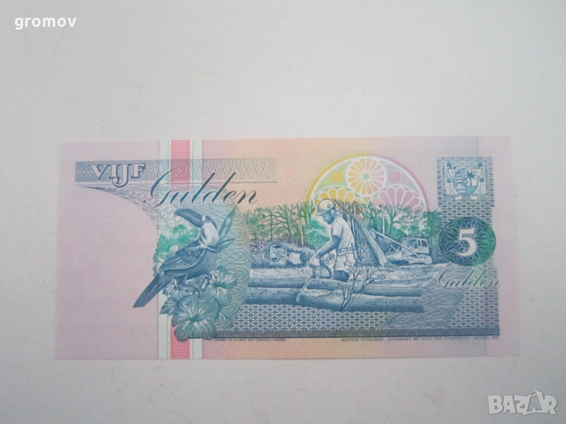 банкнота 5 гулдена Суринам, снимка 1 - Нумизматика и бонистика - 36036250 банкнота 5 гулдена Суринам, снимка 2 - Нумизматика и бонистика - 36036250 1/2