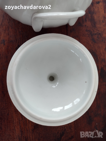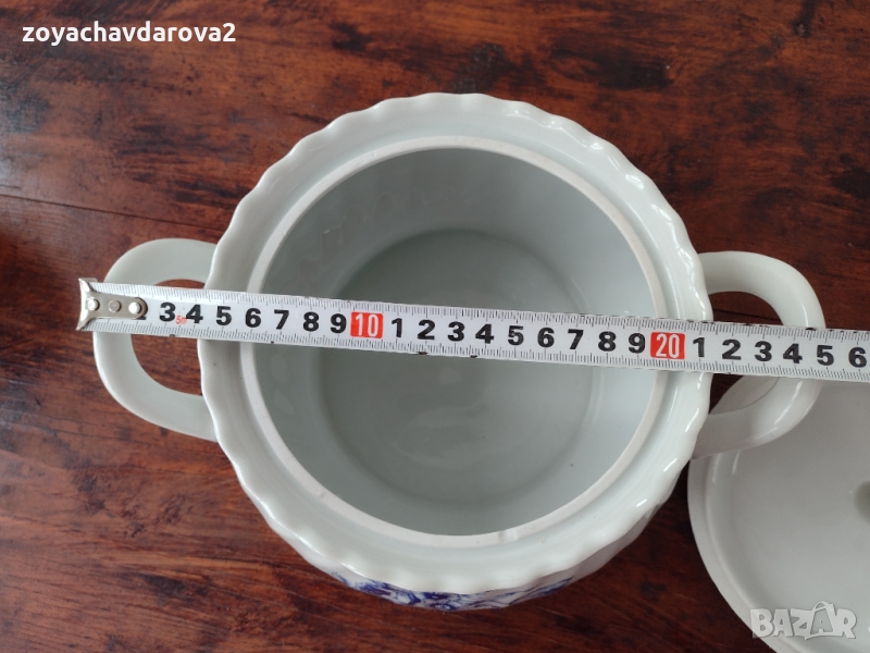 БЪЛГАРСКИ, ОТ ВРЕМЕТО НА СОЦА, ПРОИЗВОДСТВО И МАРКИРОВКА НА "КИТКА" НОВИ ПАЗАР, СИН ДЕКОР ЦВЕТЕ РАЗПОЛОЖЕНО ДВУСТРАННО, ВМЕСТИМОСТ - 2,600 Л. ИМА ЕДНА МНОГО МАЛКА ЗАБЕЛЕЖКА ВИДИМА ОТ СНИМКИТЕ Т.Е. СЪВСЕМ ЛЕКО Е ЧУКНАТО РЪБЧЕТО ВЪТРЕ В СУПНИКА. ПРЕДПОЛАГАМ, ЧЕ ТАКА Е КУПЕН, ЗАЩОТО СУПНИКА Е ЧИСТО НОВ!