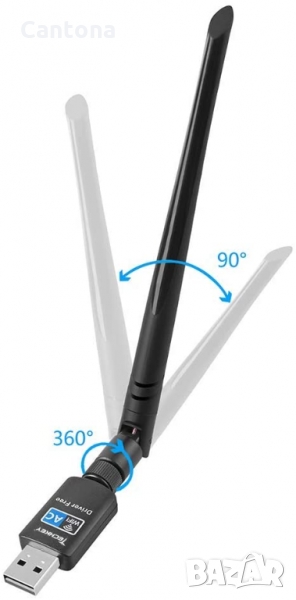 - Въртяща се антена с високо усилване 5dBi: до 600Mbps Wi-Fi скорост на 5,8GHz (450Mbps) или 2,42GHz (150Mbps) ленти. Въртящата се на 360° антена допълнително подобрява безжичното предаване и приема сигнали от всякакъв ъгъл. Тази 5dBi висок обхват WiFi антена може да се свърже към мрежата, дори ако сигналът е слаб.