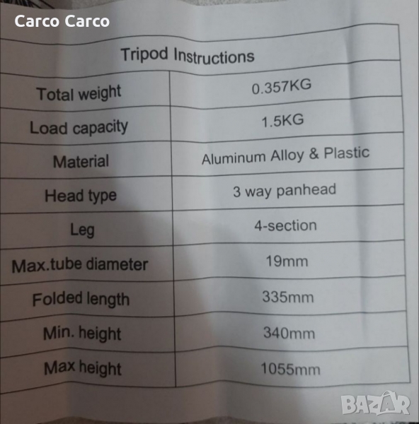 Статив триножник за камера или фотоапарат плюс снадка и мобилен телефон.