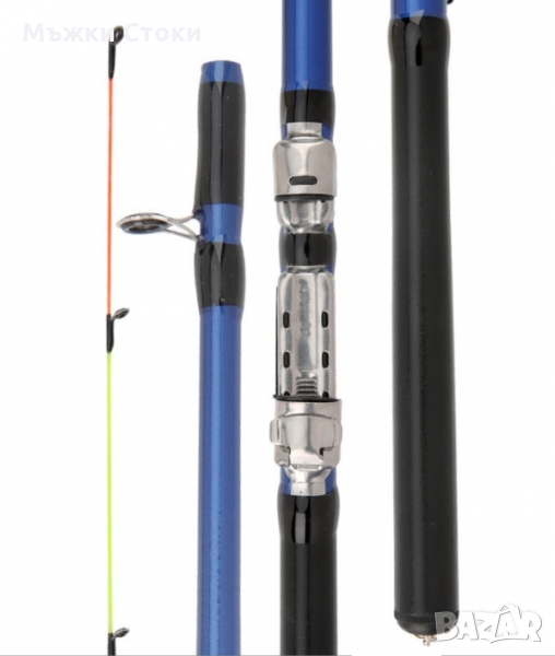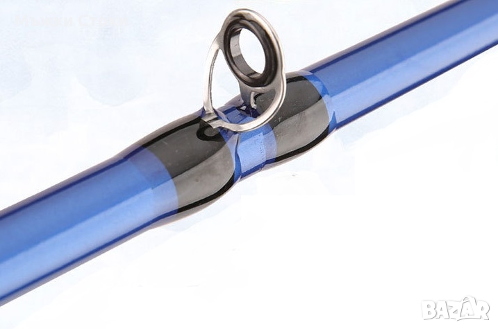 Връхчето на въдицата е от фибро стъкло и има 7 водача, на долната част има 2 водача и държач за макара.