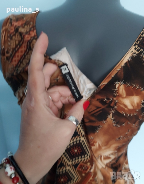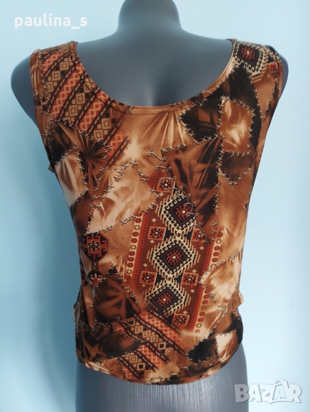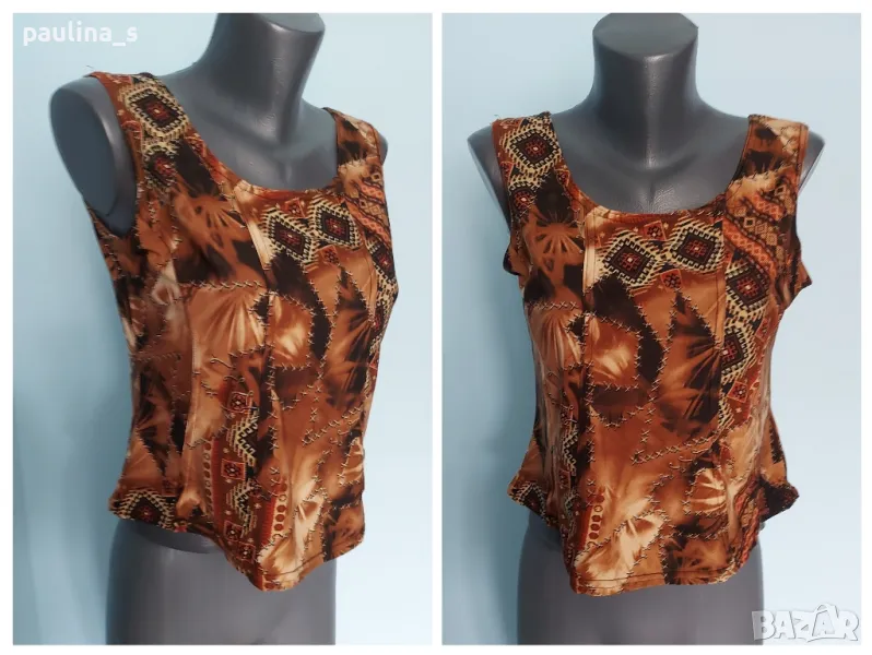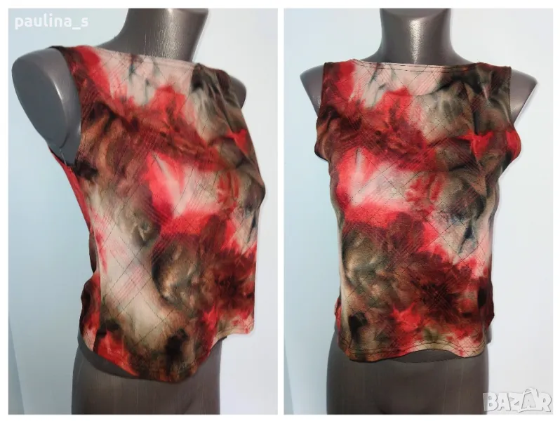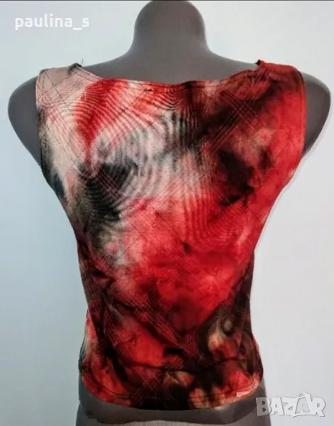 2️⃣. Колаж / S / 2XL - Италианска меланж блуза или топ с ламе. Цената е крайна 24,99лв / 12,5 евро. Една бройка. Хипер еластичен потник тип блуза - унисайз. Десенът е много ефектен с преливане и червен брокат. Дрехата е много впечатлителна и удобна, блести на светлината. Материята е много еластична. Като нова, без дефекти и етикет.