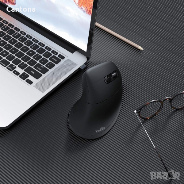 Bluetooth вертикална ергономична мишка, Vssoplor BT1+BT2+2.4G, оптична-1000/1600/2400 DPI, 5 бутона