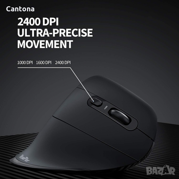 3 регулируеми DPI Тази вертикална мишка е безшумно щракване с нива 1000/1600/2400 DPI, отговаря на нуждите на игри или работа и следи плавно при работа на всяка повърхност.