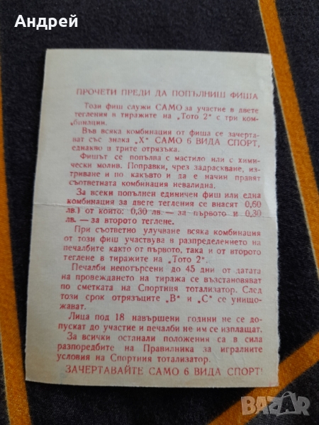 Стар тото фиш #4, снимка 1 - Антикварни и старинни предмети - 36049251 Стар тото фиш #4, снимка 2 - Антикварни и старинни предмети - 36049251 1/2
