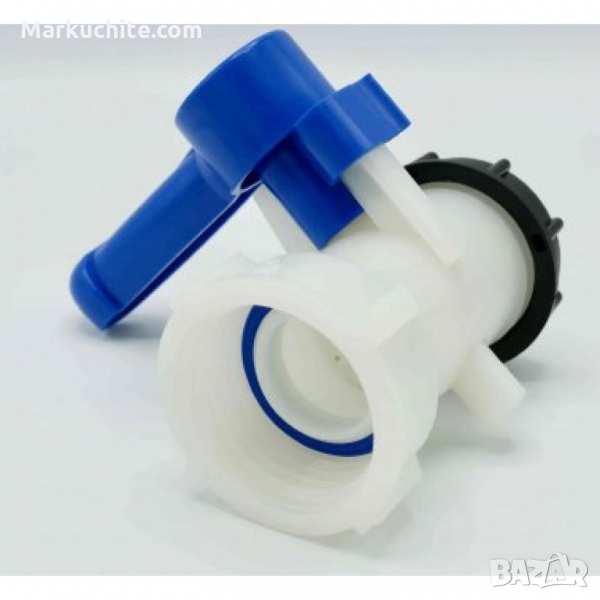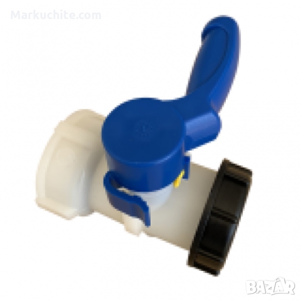 Сферичен кран за IBC бидон, тип Пеперуда, женска резба S60x6 и мъжка резба с капачка S60x6