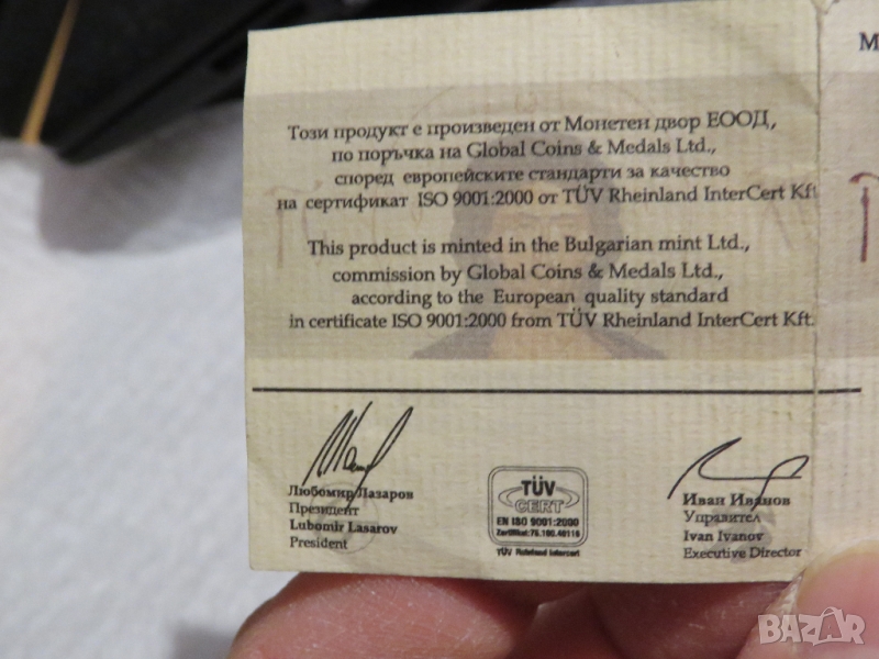 Получавате медала със свидетелство за автентичност .