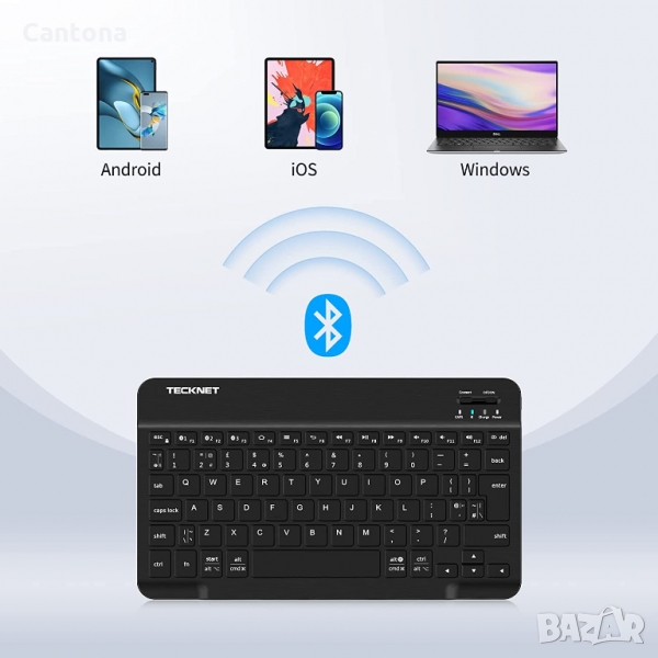 Bluetooth връзка с вашите мобилни устройства като таблети и мобилни телефони, ви носи повече удобство, когато трябва да пишете, работно разстояние до 10 метра