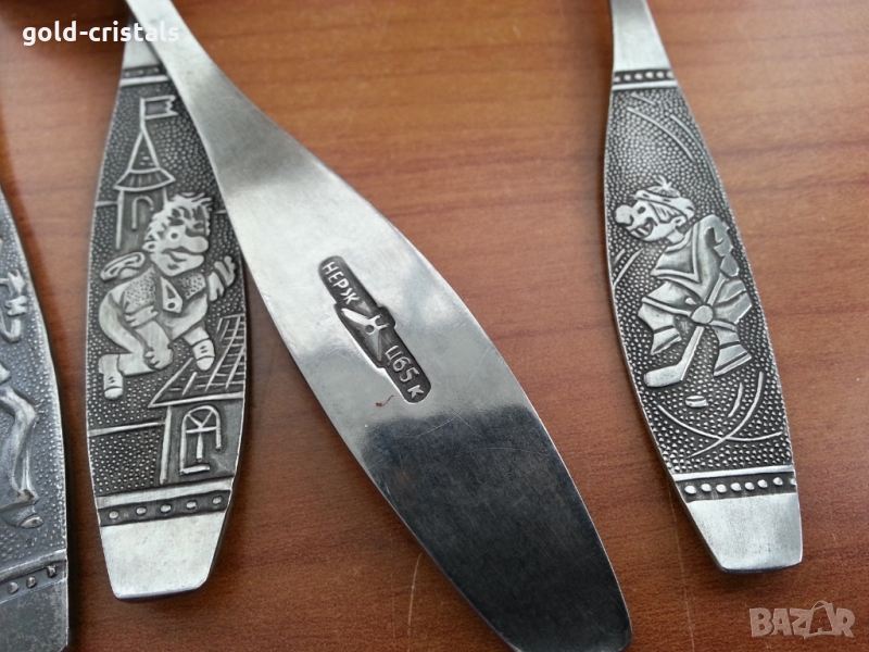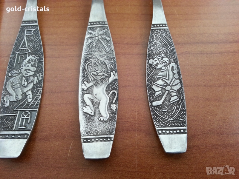 Руски детски комплект за хранене с приказни герои 4бр нож вилица лъжица и лъжичка сервиз комплект сет лот ретро арт декор винтидж колекция стари