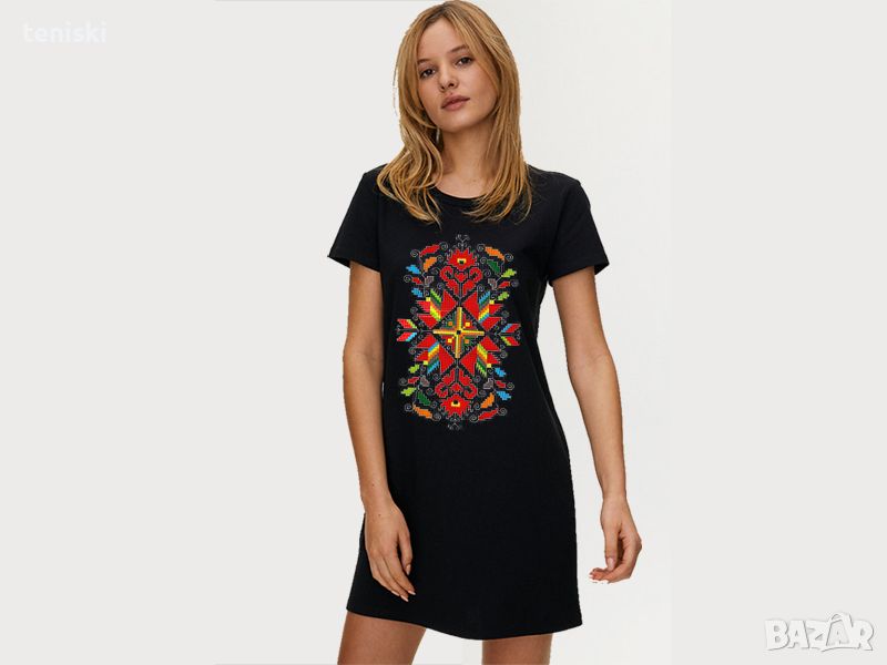 Дамска рокля тениска с шевици