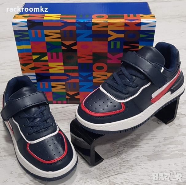 Детски кецове с лепенка с син цвят