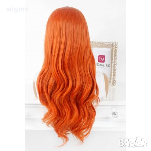 Дълга чуплива яркорижава / оранжева лейс фронт перука Джинджър