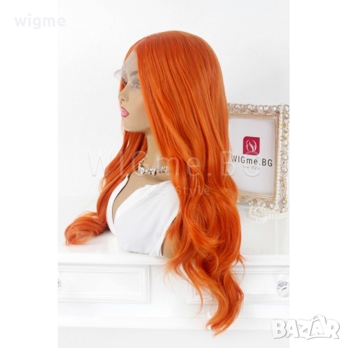 Дълга чуплива яркорижава / оранжева лейс фронт перука Джинджър е с универсален размер – можете да регулирате широчината й с помощта на специални ластици, които задържат стабилно перуката върху главата Ви и предпазват от разместване.
