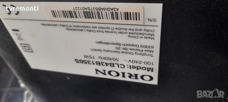 TCon BOARD ,T420HVN06.3,CTRL BD, 42T34-C03,,FOR Orion CLB43B1350S борда е гарантирано работещ Демонтиран от телевизор Orion модел CLB43B1350S със счупен дисплей T430-15T-DLED