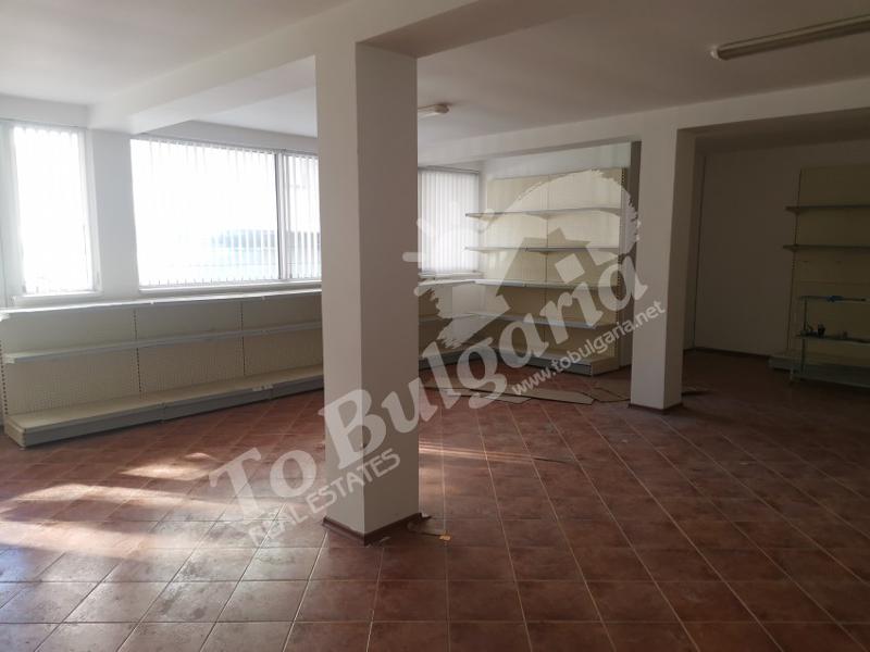 ID:20624 Магазин под наем със зп 75кв.м. (РЗП 150кв.м.) и санитарен възел, разположен в самостоятелна сграда в близост до бул.България. Под обекта има склад със същата площ, височина 4,50м и ролетна гаражна врата с дистанционно. Имотът е изцяло саниран.