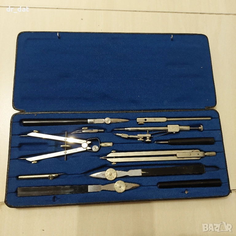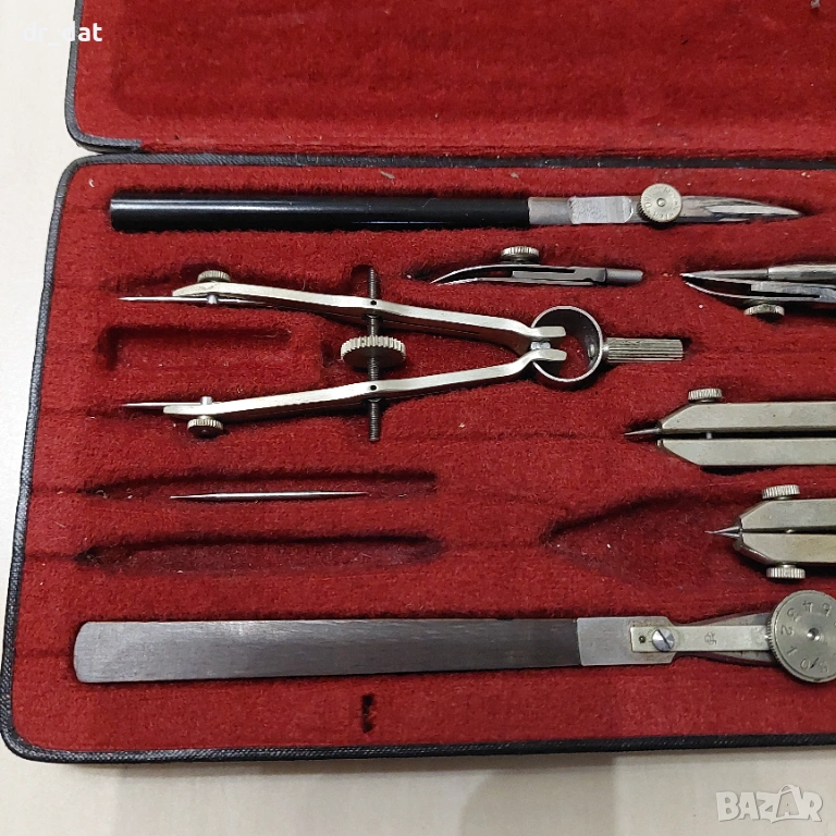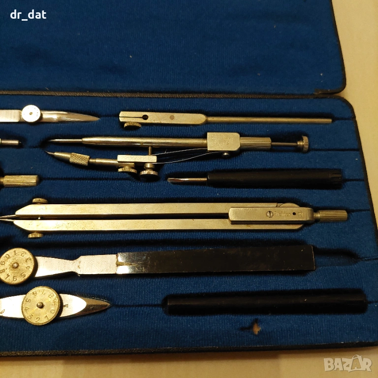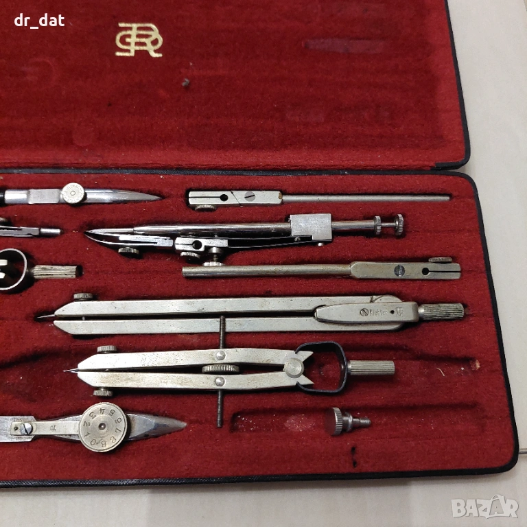 Стари комплекти чертожни инструменти Richter. Моделът е Коперникус VII. Състоянието на кутиите е много добро за годините и механизмите им за затваряне работят отлично.