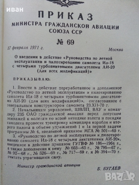 Ръководство по летателна експлоатация на самолет ИЛ -18  - 1980 г. → Обява 36062445