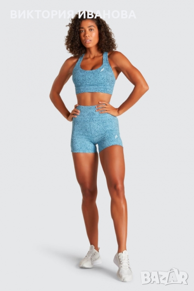 Силиконово лого върху лявото бедро и задната част на талията (матово върху плътни цветове, блестящо върху щампи) Гладък, гъвкаво-компресиращ материал, прилягащ по тялото.