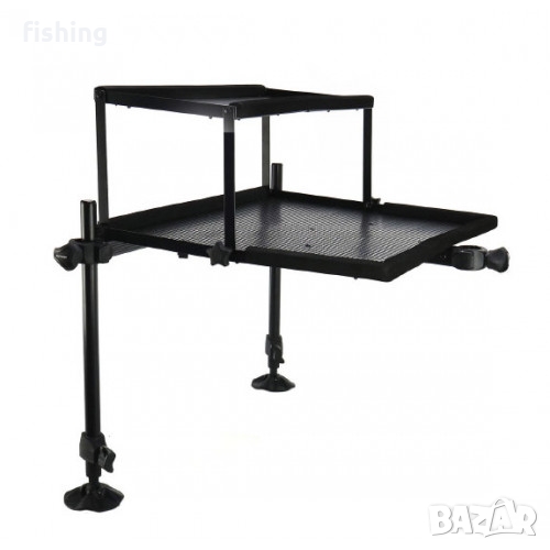 Масата е алуминиева ! прикачно Formax – Маса със сенник на изключително достъпна цена! Масата е изключително стабилна с твърдо покритие и сенник, който ще запази вашата стръв на сянка и суха. Монтирането на тази маса е възможно на столове за подаване с диаметри 25 и 36 мм (за да се монтира на диаметър 36 мм, адаптерният пръстен първо трябва да бъде отстранен от скобата). Накладката е твърда и се сгъва за транспортиране с лесно сгъване.Размери:67х50см. В комплект към масата има и регулиращ се стабилен крак с широка упора срешу проникване в мека земя като кал и пясък.