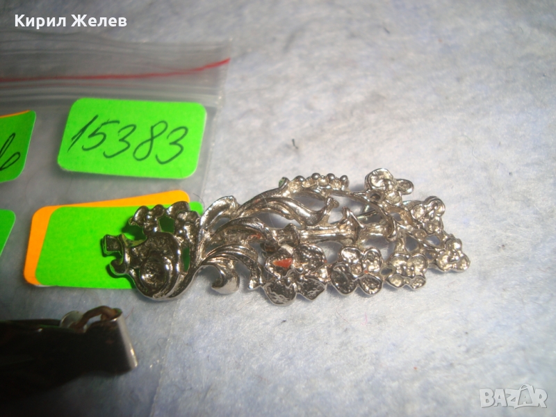 2 СТАРИ УКРАШЕНИЯ ПОСРЕБРЕНИ ВИНТИДЖ БИЖУТА ФЛОРАЛНА БРОШКА и ФИБА ШНОЛА 15383