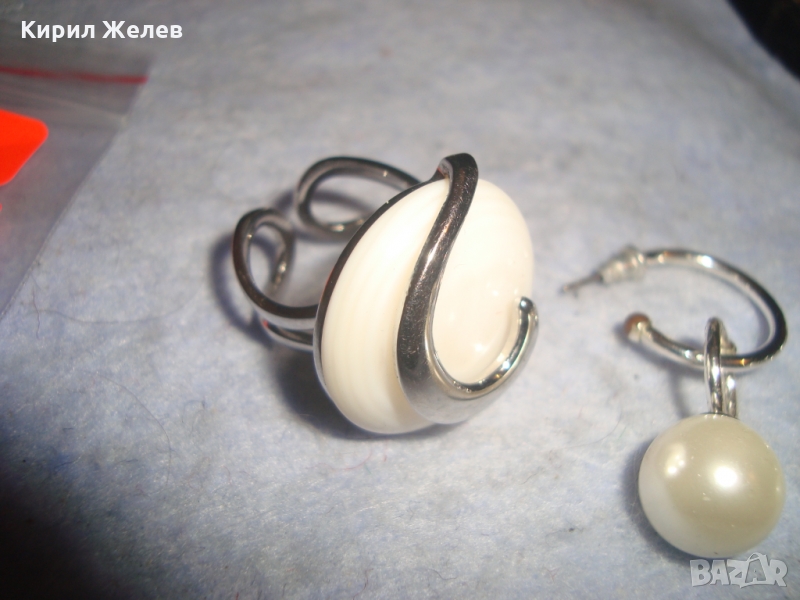 КОМПЛЕКТ АРТ СРЕБРИСТИ ПЕРЛЕНИ ОБЕЦИ и ПРЪСТЕН 26202